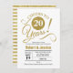 Design elegante em dourado brilhante falso e branco. Apresenta fonte de tipografia moderna em estilo script. Saúde aos 20 anos! Pode ser personalizado para qualquer ano.