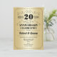 Convite de Festa de 20 anos de Casamento. Cartão de convite dourado e preto. Perfeito para uma celebração elegante. Pode ser personalizado para qualquer ano.