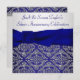 Elegante sapphire marinho real azul-da-meia-noite e damasco prateado com convite de festas de aniversário de 25 de prata azul-real. Este belo convite de festas de damasco azul-prateado e de meia-noite é facilmente personalizado para o seu partido ou evento, simplesmente escolhendo o botão "Personalizar!" para começar a adicionar a sua fotografia, detalhes do evento, estilo da fonte, tamanho da fonte e cor e texto. Observe que todos os designs de cartas e convites que você encontrará no Zazzle são gráficos impressos sem joias reais, arcos, levantados, gravados em relevo ou peças ou peças adicionadas.