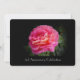 Uma única rosa rosa em um fundo preto decora a frente deste convite de casamento de 3º aniversário de casamento de dois lados. O verso tem letras pretas em um fundo rosa pálido. Muito elegante! Você pode facilmente alterar o texto para nome, título do evento, data, local, etc. Fotografia original de Alan Socolik. Todos os Direitos Reservados © 2015 Alan & Marcia Socolik.