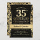 Convite de festa de aniversário de casamento de 35 anos em preto e dourado.
