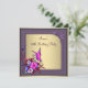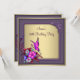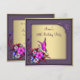 Convite de festa de cinquenta anos da mulher com elegantes redemoinhos florais de borboleta dourada e roxa.