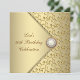 Convite de festa de 50 anos dourados para mulher com floreio elegante em redemoinho dourado e joia central de pérola. Este lindo convite de festa de 50 anos dourados é facilmente personalizado para o seu evento, basta adicionar os seus detalhes no estilo de letra e redação de sua escolha.