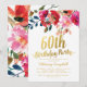 Convites de festa de 60 anos elegantes com fundo branco clássico, exibição floral em aquarela, título tipográfico em folha de ouro falso e modelo de celebração de aniversário moderno.
