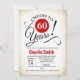 Convite de Festa de 60 Anos em Vermelho Branco Preto com fundo cremoso retrô. Saúde aos 60 anos! Pode ser personalizado para qualquer ano.