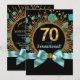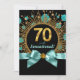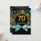 Convite de festa de aniversário de setenta anos azul turquesa e dourado com pontos brilhantes e explosão de estrelas. Este lindo convite de festa de aniversário azul turquesa e dourado é facilmente personalizado para o seu evento, basta adicionar seus detalhes no estilo de fonte, cor e texto de sua escolha. Este é um design impresso sem jóias reais, brilhos, laços, etc.