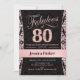 Convite de 80º Aniversário em preto e dourado rosa. Cartão de convite elegante com brilho falso dourado rosa e diamantes. Apresenta padrão damasco e fonte manuscrita. Fabulosa aos oitenta! Design clássico perfeito para uma festa estilosa. Por favor, envie-me uma mensagem se precisar de uma idade personalizada.