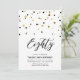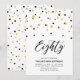 Celebre seu dia especial com este convite de festa de 80 anos minimalista. Este design apresenta um script de letra elegante "Oitenta" com confetes em forma de hexágono com uma combinação de cores preto e dourado. Mais designs disponíveis na minha loja BaraBomDesign.