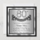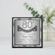 Convite de festa de 80 anos de prata com números de diamante e faixa de aniversário feliz em um fundo prateado e preto. Este convite de festa de 80 anos de prata é facilmente personalizado para o seu evento. Você pode alterar a cor do fundo. Este design impressionante funciona bem para homem ou mulher. Este é um design impresso sem diamantes reais, prata, brilho, etc.