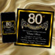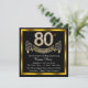 Convite de festa de 80 anos com números de diamante dourado e faixa em um fundo preto e dourado. Este lindo convite de festa de 80 anos preto e dourado é facilmente personalizado para o seu evento. Você pode alterar a cor do fundo. Este design impressionante funciona bem para homem ou mulher. Este é um design impresso sem diamantes reais, prata, glitter, etc.