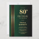 Convites Festa de 80 Anos Preto Verde com Listras Douradas