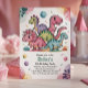 Celebre o 8º aniversário da sua filha com este adorável convite de aniversário de dinossauro pastel! Perfeito para festas de aniversário de crianças e bebês, este design apresenta dinossauros cor-de-rosa e roxos fofos, confetes alegres e vibrações de festa divertida — tudo em cores suaves e femininas. Este convite diz "8º aniversário", mas você pode facilmente alterar o ano de aniversário para o que desejar.