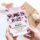 A diversão do pijama começa aqui! Este divertido convite de aniversário para o Dia das Bruxas apresenta um design cor-de-rosa-doce cheio de morcegos bonitos, crânios, rosquinhas, aranhas e doces - perfeito para qualquer pequeno fantasma planejando uma festa de pijama de aniversário para se lembrar! Personalize o nome, a data e os detalhes da festa para torná-lo exclusivamente seu. Excelente para aniversários de outubro, festas de época assustadora, ou crianças que amam truques ou tratamentos. Whimsical e assustador, com a porcaria certa!