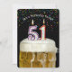 Velas de aniversário número 51 em caneca de cerveja com confete colorido em preto para convite para festa de aniversário de 51ruas.