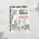 Enlouquece com este adorável convite de aniversário de animais de festa! Apresentando um padrão de pele girafa divertido e animais cártaros bonitos e desenhados à mão em chapéus de festa, esta design é perfeita para o seu dia especial. Personalize com o nome, a idade, os detalhes da festa e as informações de RSVP. Excelente para aniversários da selva ou com temas zoológicos, este convite lúdico dá o tom para uma comemoração extremamente divertida!