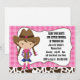 Este convite de festas de vaqueira divertida do oeste mostra uma vaqueira bonita em um fundo de xadrez rosa, e texto personalizável.