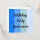 Legal padrão de listras azuis com texto: Festa de aniversário e um nome modelo. Ajustado estilo marítimo.
