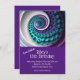 Modelo de Festa de aniversário roxa e turquesa. Pode ser usado para qualquer festa de aniversário ou evento ou ocasião. Basta mudar o texto de modelo para o seu próprio convite de aniversário personalizado único. O verso é roxo sólido.