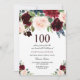 Burgundy Red Pink Floral 100º Convite de aniversário Ver coleção correspondente em Niche e Nest Store Também temos muitos outros convites e coleções.