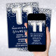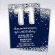 Azul marinho e 11 de prata Aniversário convite 11 para um convite de aniversário preto de prata branca com moderno roteiro escrevendo e balões de folha divertida.
