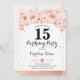 convite de aniversário 15. Design elegante em ouro brilhante de rosa com sotaque floral. Convide cartão com fonte de script e confetti. Coral cor-de-rosa, branco. Perfeito para uma comemoração de na moda 30 dias. Envie-me uma mensagem se precisar de idade personalizada.