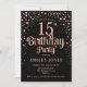 Convite de aniversário 15. Design elegante em preto e brilhante rosa de ouro. Possui fonte de script na moda e confetti. Envie-me uma mensagem se precisar de idade personalizada.