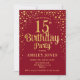 Convite de aniversário 15. Design elegante em vermelho e ouro brilhante. Possui fonte de script na moda e confetti. Envie-me uma mensagem se precisar de idade personalizada.