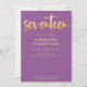 Introduza o novo moderno, elegante 17.º convite de aniversário com fundo roxo com texto de tipografia dourado escrito à mão que diz 17". Personalize esta placa de modelo, adicionando as informações de sua própria parte.