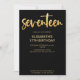 Introduza o novo e elegante 17.º convite de aniversário com fundo preto com texto de tipografia dourado escrito à mão que diz 17". Personalize esta placa de modelo, adicionando as informações de sua própria parte.