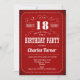 18º Convite de aniversário. Design de retrô elegante em vermelho e branco. Pode ser personalizado em qualquer idade!