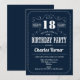 18º Convite de aniversário. Design retrorreflector azul e branco do marinho legante com fonte de script. Saúde para 18 anos! Envie-me uma mensagem se precisar de mais personalização.