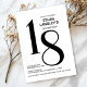 Convide seus amigos e entes queridos com este moderno convite de aniversário 18 preto e branco. A área de texto personalizável neste modelo de convite permite que você inclua facilmente todos os detalhes necessários para sua celebração especial de aniversário, incluindo as informações de data, hora, local e RSVP. Uma variedade de tipos de papel e estilos de canto estão disponíveis para seus convites exclusivos, juntamente com a opção de download se você preferir um formato digital.