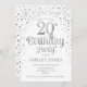 Convite de aniversário 20. Design elegante em branco e prata brilhante fraca. Possui fonte de script na moda e confetti. Envie-me uma mensagem se precisar de idade personalizada.