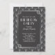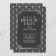Art Deco inspirou Convite de aniversário em preto, branco e cinza com um padrão de ventilador na moda no reverso. Personalize este sofisticado design alterando os detalhes do texto. Disponível em vários convites de festas e acessórios. Parece excelente no mate ou torne-o luxo escolhendo no papel do shimmer.