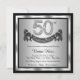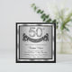 Convite de aniversário preto e prateado 50º com números de diamante e faixa em fundo prateado e preto. Este belo convite de aniversário prateado 50º é facilmente personalizado para o seu evento. Você pode alterar a cor de fundo. Esta design surpreendente funciona bem para um homem ou uma mulher. Este é um design impresso sem diamantes reais, prata, brilho, etc.