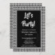 Um moderno convite de aniversário preto e branco, com 50º e uma borda em diamante preto e branco.