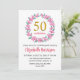 Este 50º Convite de Aniversário apresenta uma delicada coroa verde floral feita de flores rosa silvestres, folhas verdes e uma combinação moderna de fontes quic. O ouro 50, acompanhado da inscrição "e fabuloso", é colocado no centro da garagem. A parte traseira da placa apresenta iniciais em uma fonte branca elegante em um plano de fundo do ouro. O convite pode ser facilmente personalizado com suas informações especiais de aniversário.