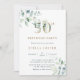 Este convite de aniversário 50º apresenta cor d'água, eucalipto e folhas verdes com números de ouro botânico.