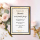 Um cartão de convite bolsa mensageifesta de aniversario elegante para o 50º aniversário para homens e mulheres. Modelos para suas informações. Molduras de ouro pretas e falsas e chuva de confete de ouro. Espanto branco elegante, letras negras. Traseiro: fundo preto e confete de ouro.