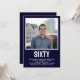 O 60º Aniversário do 60º Aniversário do Tipo Foto é perfeito para celebrar o homem na sua vida que está fazendo sessenta anos. A palavra "sessenta" está em uma fabulosa fonte boné em branco, em azul marinho. Você escolhe a foto que torna este convite exclusivo para seu convidado de honra. Os modelos são muito fáceis de usar e leva apenas um minuto para digitar suas informações e carregar uma foto favorita e ver seus fabulosos convites de 60 anos.