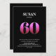 Convide seus amigos e entes queridos para a sua comemoração de 60 anos com este na moda minimalista convite de aniversário preto e rosa.