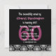 Este padrão floral preto e prateado com friso de nome personalizado e sotaque rosa é uma maneira divertida, mas elegante de convidar as pessoas para uma celebração da 60ª festa de aniversário. Todo texto é totalmente personalizável. Você pode experimentar diferentes tipos de papel clicando na guia "Opções de convite" no canto superior direito. Eu recomendo o papel metálico calado que dá ao seu convite de aniversário um shimmer festivo e brilhar. Adorável!