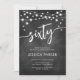 60º Convite de aniversário. Design preto e branco elegante com padrão de quadro. Cartão de convite moderno clássico com luzes de fada e fonte de script. Perfeito para uma comemoração de na moda sexagésimo dia. Personalize com seus próprios detalhes. Pode ser personalizado para qualquer idade! Impressos convites Zazzle ou modelo de impressão digital instantânea para download.