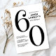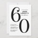 Convide seus amigos e entes queridos com este moderno convite de aniversário 60º preto e branco. A área de texto personalizável neste modelo de convite permite que você inclua facilmente todos os detalhes necessários para sua celebração especial de aniversário, incluindo as informações de data, hora, local e RSVP. Uma variedade de tipos de papel e estilos de canto estão disponíveis para seus convites exclusivos, juntamente com a opção de download se você preferir um formato digital.