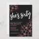 Chic Sessenta Rosa preto Dourado Convite de aniversário 60º. Um divertido, mas elegante, 60º convite de aniversário com ouro rosa-rosa-cinza, flores pretas e brancas para os jovens de coração. Por favor, note que não há um martelo ou folha de ouro, é simplesmente uma cor. Um padrão de flor brincalhão enquadra uma tipografia de script "ela tem sessenta" misturada com uma fonte mais clássica de serifa. Celebrar sessenta anos de vida com esta bela design botânica. A parte divertida é que você pode mudar TODAS as cores! Você não só pode mudar as cores e a fonte de fundo, como também pode mudar as linhas das flores. Disponível como um convite impresso ou como um convite digital para download que você pode enviar por e-mail ou que foi impresso localmente!