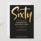 Introduza o novo convite de aniversário 60º, elegante, fundo preto com a tipografia dourada escrita à mão, texto "60". Personalize esta placa de modelo, adicionando as informações de sua própria parte.