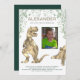 Convite de aniversário de 6 de dinossauro T-Rex com modelo de foto. Todas as espécies de dinossauros são bem-vindas celebram seu pequeno T-Rex virando 6 com este divertido convite de aniversário para dinossauros da selva de aquarela. Adicione uma foto da sua natureza em breve, para ter seis anos de idade e todos os detalhes da sua festa para criar um T Rex rude e um belo stegossauro personalizado jurassic selgle 6 com folhagem verde. Idade jurássica pré-histórica Ilustrações do dinossauro, obra de arte original de Catherine Sweetman