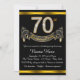 Números elegantes de ouro e diamante e convite de aniversário preto e 70 de banner. Este belo convite de aniversário 70 preto e dourado é facilmente personalizado para o seu evento. Esta design surpreendente funciona bem para um homem ou uma mulher.