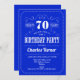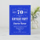 Convite de aniversário 70. Elegante design real, azul e branco, com letra de script. Saúde para 70 anos! Envie-me uma mensagem se precisar de mais personalização.