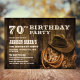 Convide seus amigos e entes queridos para sua festa de aniversário de 70 com este convite para o oeste de madeira rústica.